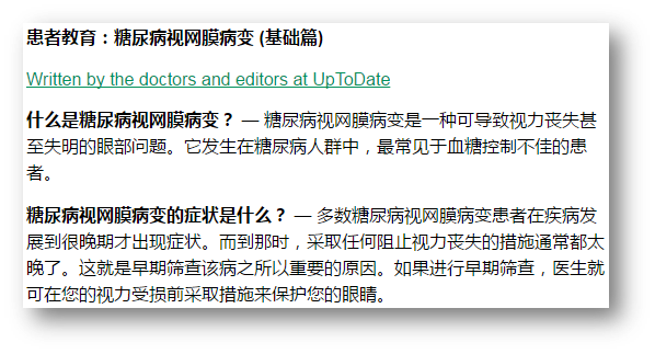 UpToDate临床顾问提供超过 1500 篇患者教育专题,这些专题根据内容的深度分为两种类型: