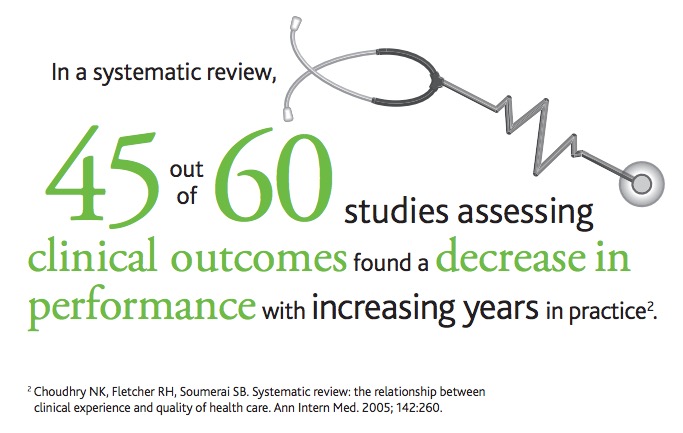 Choudhry NK, Fletcher RH, Soumerai SB. Systematic review: the relationship between clinical experience and quality of health care. Ann Intern Med. 2005; 142:260.